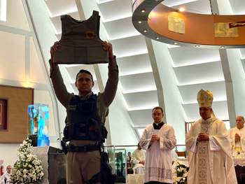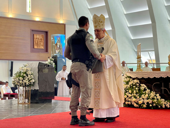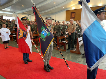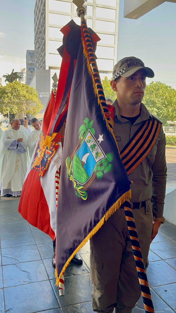 A Bandeira da Paróquia Militar de Cristo Rei foi idealizada nas duas principais cores da Polícia Militar do Rio Grande do Norte, vermelha e Azul. Ver Mais