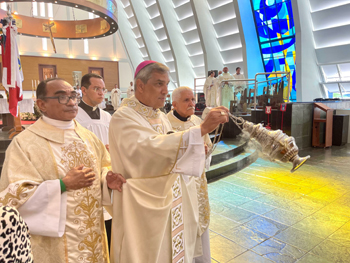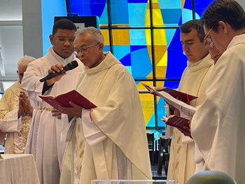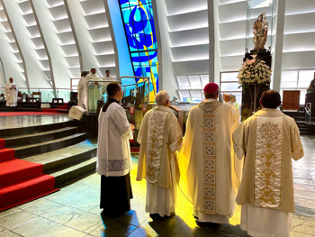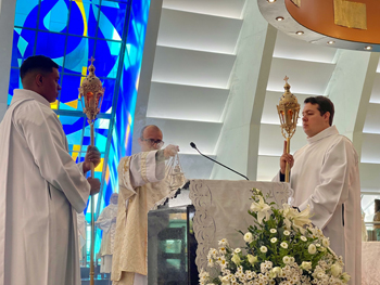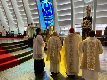 Cristo Rei Onipotente Te saudamos Bom JesusReina sempre em minha vidaE no trono de Tua Cruz